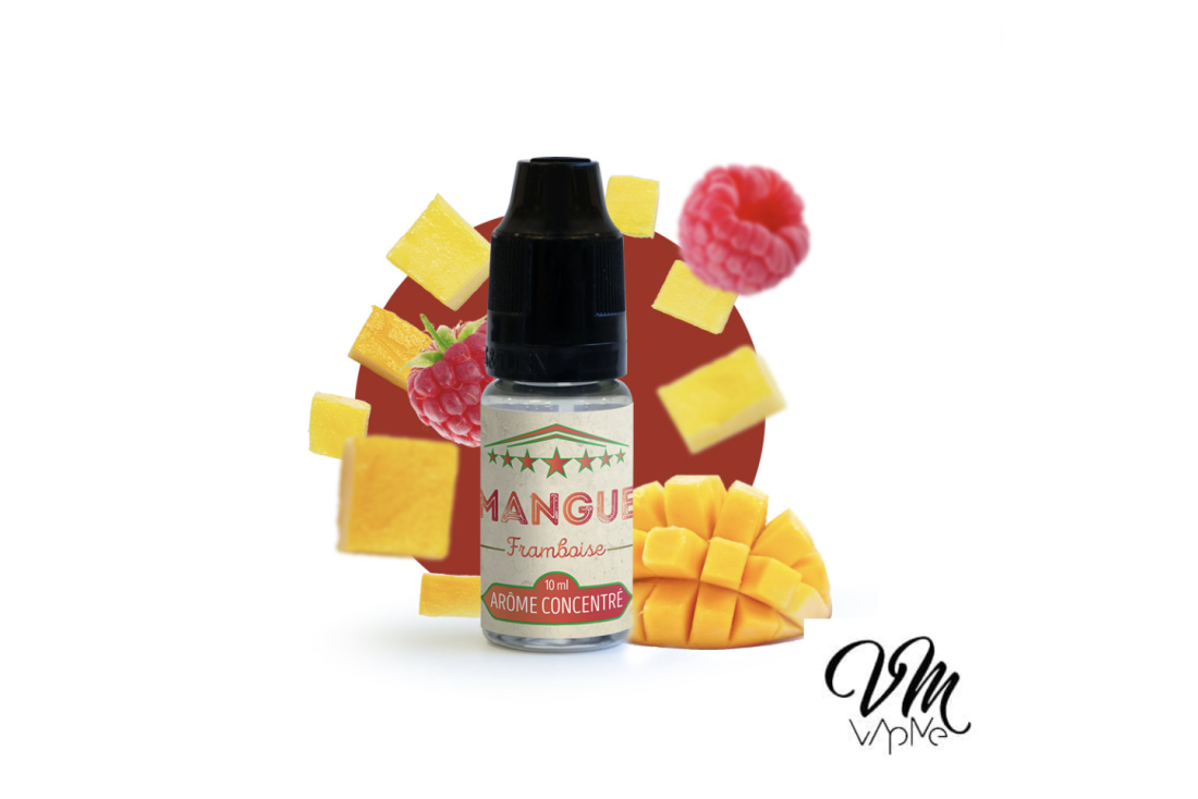 Avec le concentré "Mangue Framboise" de la gamme Cirkus de VDLV retrouvez l'exotisme d'une mangue juteuse rehaussée par l'acidité de belles framboises.