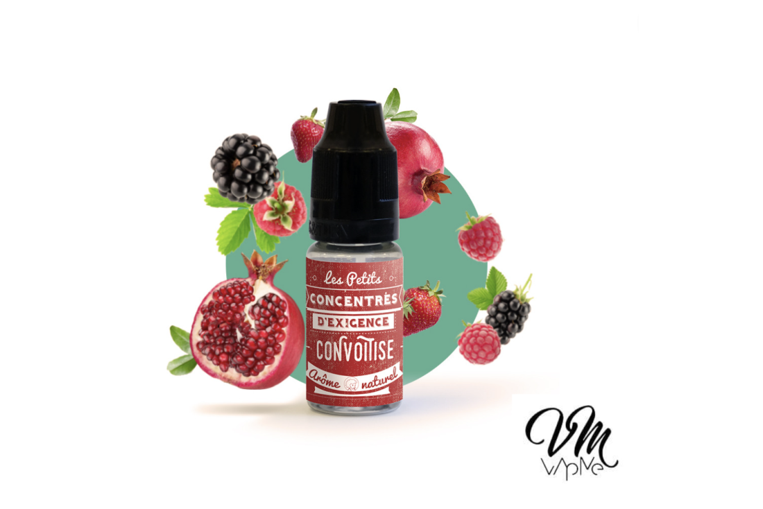 Le concentré "Convoitise" de VDLV c'est un assemblage sensuel et parfait entre des fruits rouges sucrés et des notes de grenade juteuse. Un mariage plus que réussi qui vous charmera à coup sûr !