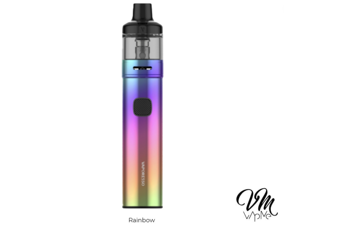 En haut de la batterie on retrouve une cartouche aimantée : le GTX Pod 22 de Vaporesso. Facile à installer, il possède une généreuse contenance en e-liquide de 3.5 ml et restera bien accroché à la batterie grâce à de puissants aimants.